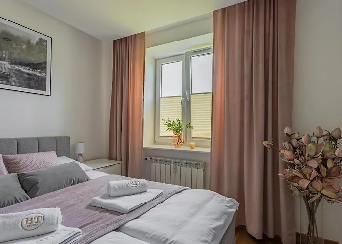 In quest'appartamento sono disponibili opzioni di self-catering in camera come un microonde, un bollitore elettrico e un frigo. Quest'alloggio è dotato di servizi per la preparazione di tè/caffè, per offrire agli ospiti un soggiorno comodo e piacevole. Il ristorante Jazz Bar propone piatti di cucina europea a 600 metri dalla struttura. L'aeroporto più vicino è Internazionale di Cracovia-Balice Giovanni Paolo II, a 135 km dall'Appartamento Bt Studio.